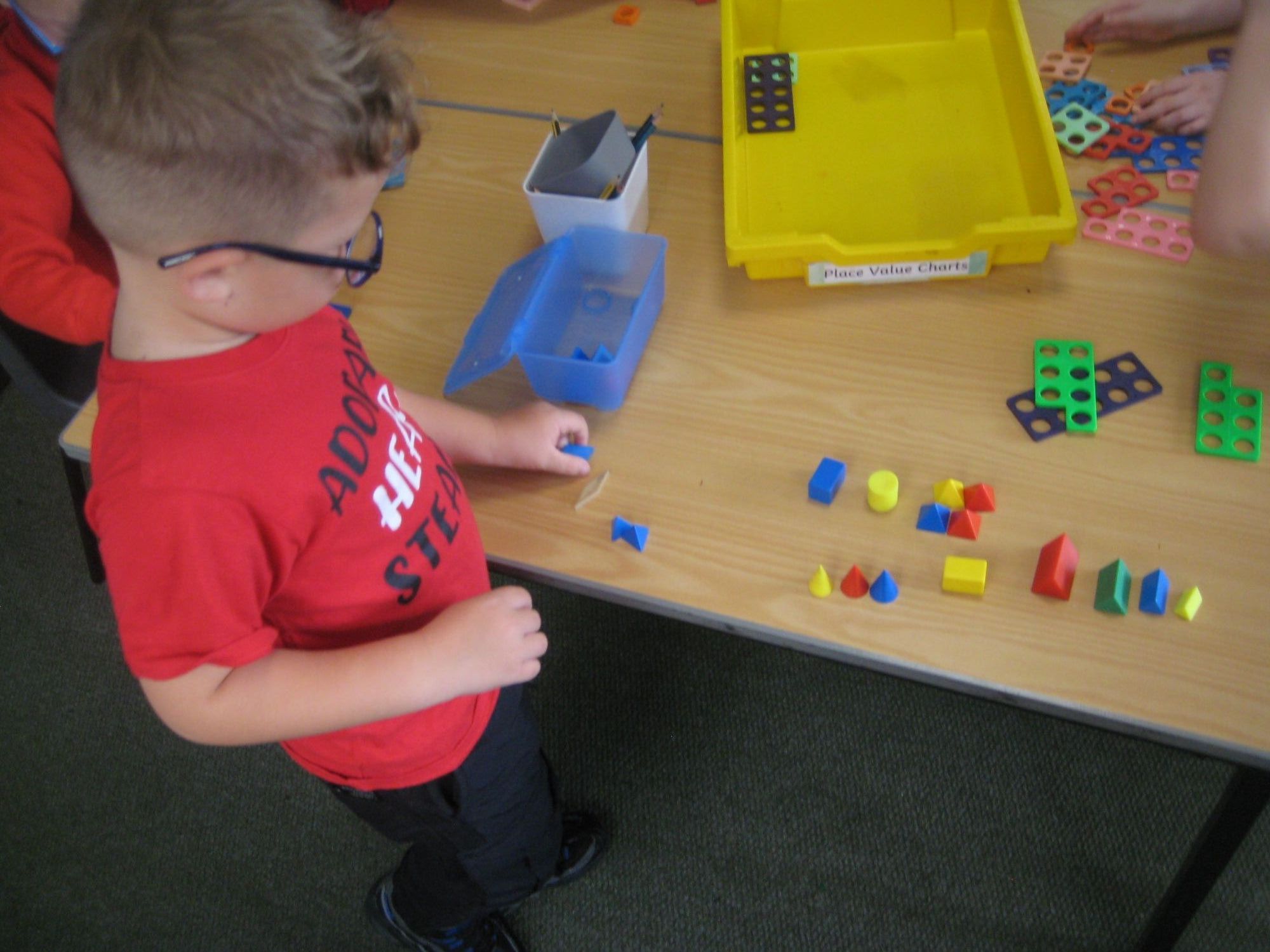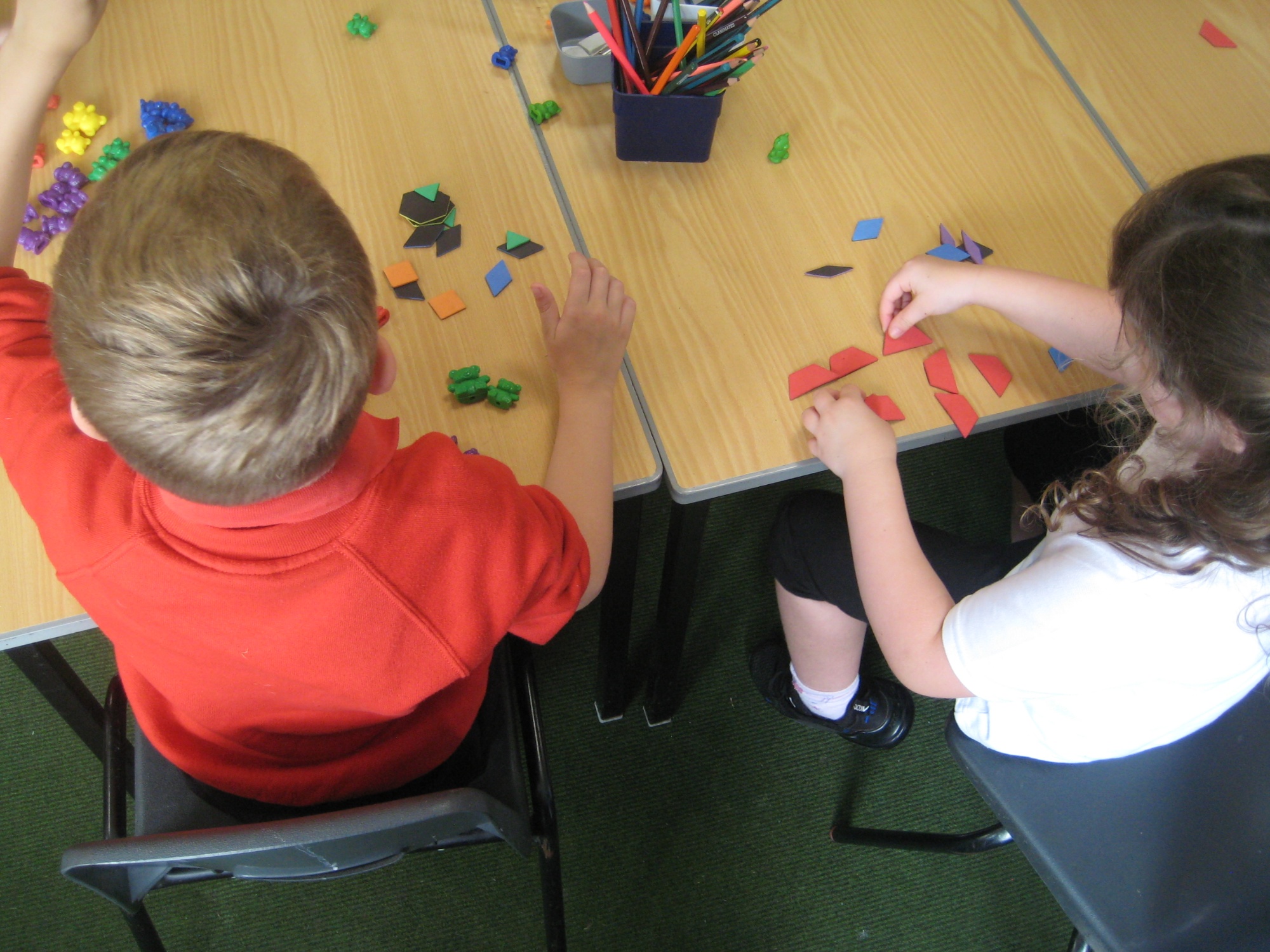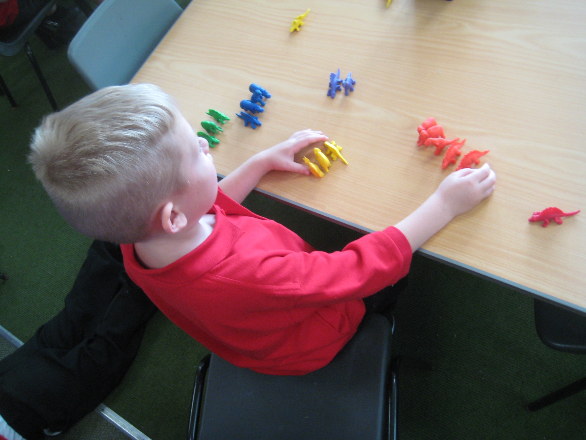 Some of the pictures show us sorting objects in maths. We can sort by colour, size or shape.