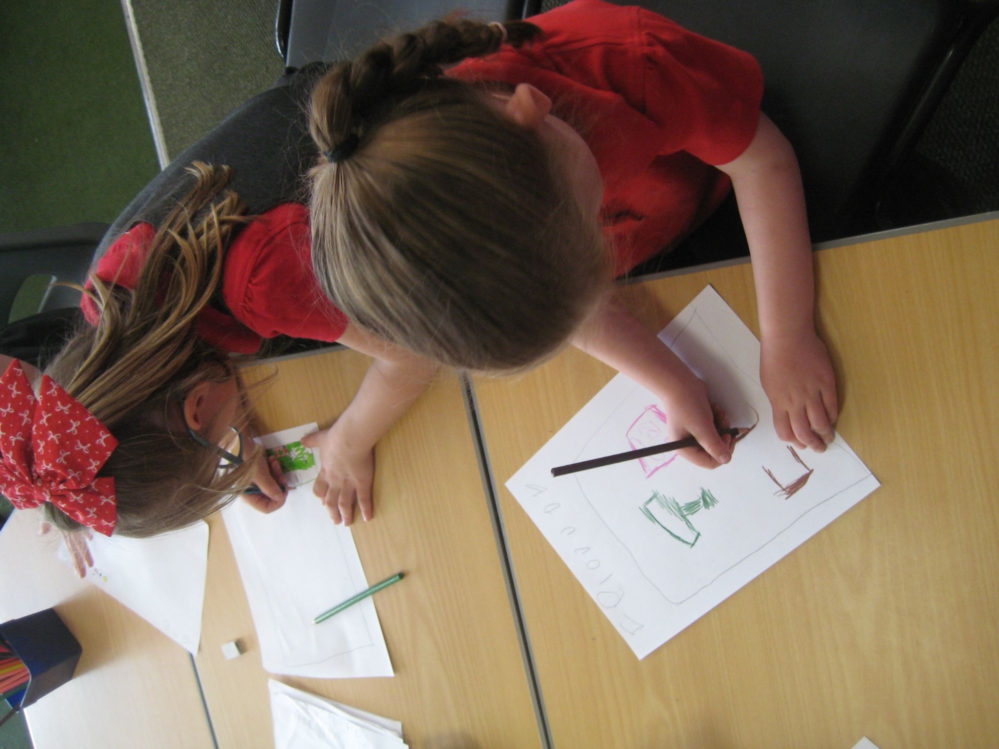 The other pictures show us drawing plans and building models of our classroom.