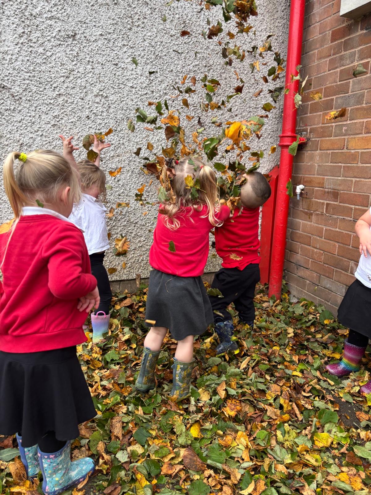Our topic this half term is ‘Marvellous Me’ then ‘Autumn’ and we go outside every day regardless of the weather.